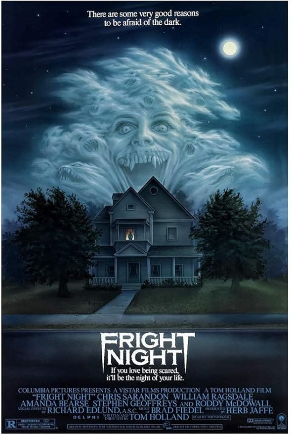 Next, we have the incredibly chilling poster for the 1985 film, Fright Night!